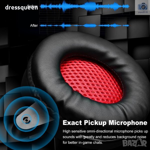 Слушалки с подсведка, микрофон, и бутон за сила на звук