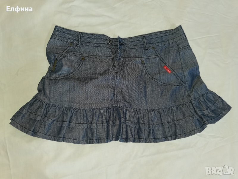 Дънкена дамска къса и ефектна пола, снимка 1 - Поли - 37551842 Дънкена дамска къса и ефектна пола, снимка 2 - Поли - 37551842 Дънкена дамска къса и ефектна пола, снимка 3 - Поли - 37551842 1/3