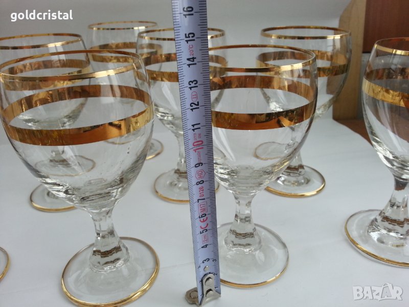 Ретро стъклени кристални чаши за вино с златен кант неизползвани без забележки 6 броя -120лв сервиз комплект сет лот ретро арт декор винтидж колекция стари антикварни предмети обзавеждане за дома и семейството подходящи за подарък за ценители и колекционери