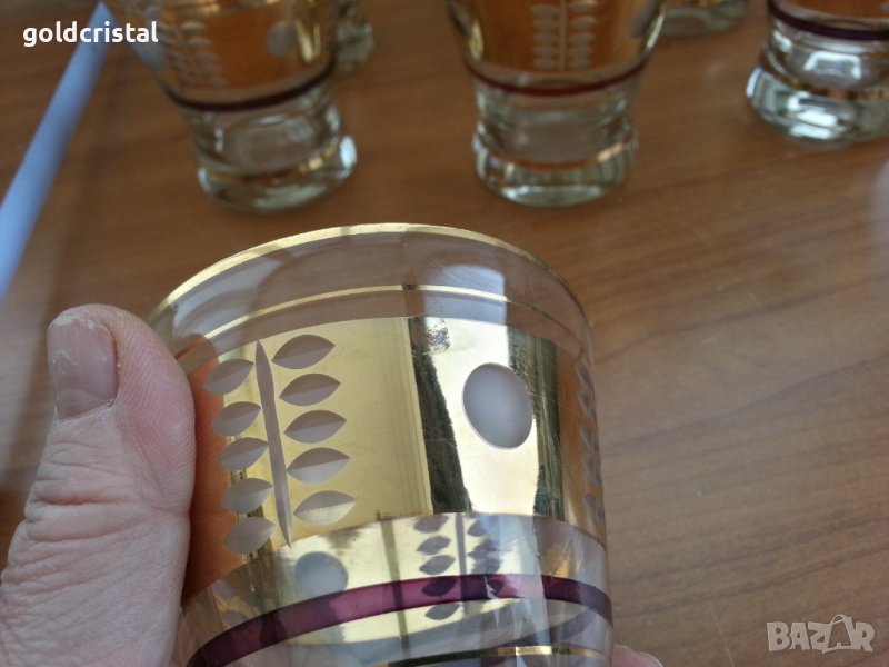 Ретро стъклени чаши с много позлата неизползвани 6бр-195лв сервиз комплект сет лот ретро арт декор винтидж колекция стари антикварни предмети обзавеждане за дома и семейството