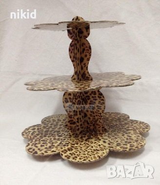 3 етажна Триетажна поставка стойка за мъфини картонена леопардови шарки диви зоо животни → Обява 37552907