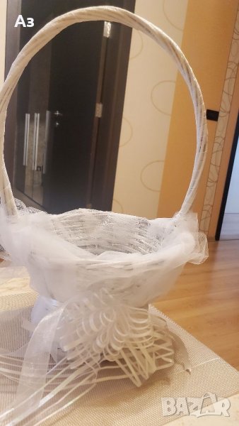 Бяла кошница за късметчета, може да се ползва и за нещо друго, мобе да се махне и тюла