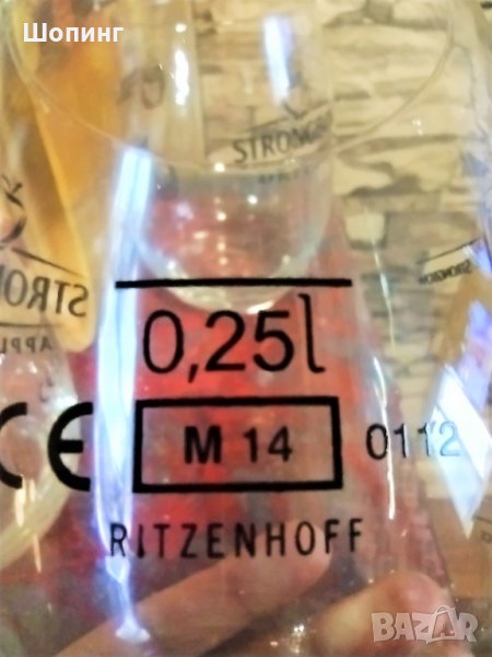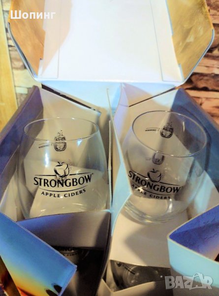НОВ! Комплект 4 стъклени чаши Strongbow (като топки) за напитки - уиски, коняк, сайдер... Производител Ritzenhoff. Високо качество на стъклото и изображенията.