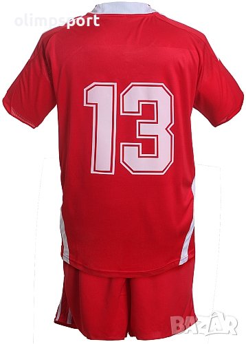 Екип футболен, Червен, С номер. Различни комбинации от размер и номер на гърба. Подходящ за тренировки и официални мачове. Размери - M-2XL. Материал - бързосъхнещ полиестер (Quick dry технология, осигуряваща бързо отвеждане на потта от кожата и изпаряването и, която създава усещане за комфорт на кожата при интензивни натоварвания).