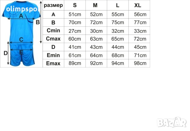 Екип за футбол/ волейбол/ хандбал, фланелка с шорти светло синьо и тъмно синьо. Подходящ за тренировки и официални мачове. Екип без номер. Различни размери. Мека и здрава материя. Материал: бързосъхнещ полиестер (Quick dry технология, осигуряваща бързо отвеждане на потта от кожата и изпаряването и. Създава усещане за комфорт на кожата при интензивни натоварвания). Предлагаме и услуга за термотрансфер на номера едно цифрени или двуцифрени. Разполагаме с 3 размера цифри с различна височина 8, 15 и 25см. Цената е 1.5лв. за 8см, 1.8лв за 15см. и 2.4лв за 25см цифра. В цената влиза и тази на номера.