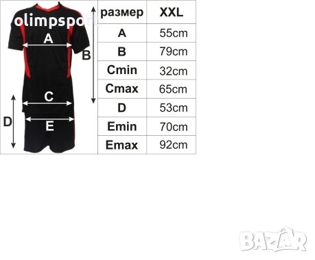 Екип за футбол/ волейбол/ хандбал, фланелка с шорти черно и червено. Подходящ за тренировки и официални мачове. Екип без номер. Различни размери. Мека и здрава материя. Материал: бързосъхнещ полиестер (Quick dry технология, осигуряваща бързо отвеждане на потта от кожата и изпаряването и. Създава усещане за комфорт на кожата при интензивни натоварвания). Предлагаме и услуга за термотрансфер на номера едно цифрени или двуцифрени. Разполагаме с 3 размера цифри с различна височина 8, 15 и 25см. Цената е 1.5лв. за 8см, 1.8лв за 15см. и 2.4лв за 25см цифра. В цената влиза и тази на номера.