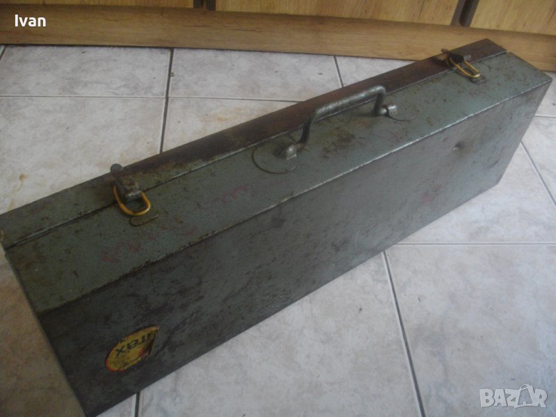 ОПИСАНИЕ Куфар - оригинален на марката.Цена 129 лв(65.96 €) . Марка и модел - VIRAX Type 62 /големият размер/ за 14 броя резбонарезни глави и вградено място за тресчотъчното рамо. Куфара е изцяло метален, масивен. Лека корозия от долната външна страна и ожулена боя. Вложки метални масивни вътре - 2 бр. за поставяне на всяка от тях по 7 бр. нарезни глави. Дръжка на куфара - масивна, метална. Копчалки - оригинални метални, като телчетата за закопчаване са сменени с неоригинални. Размери на куфара - дължина - 66 см, височина - 19,5 см, ширина - 11,5 см. Тегло на куфара с поставените в него глави 14 броя - 16,0 кг.