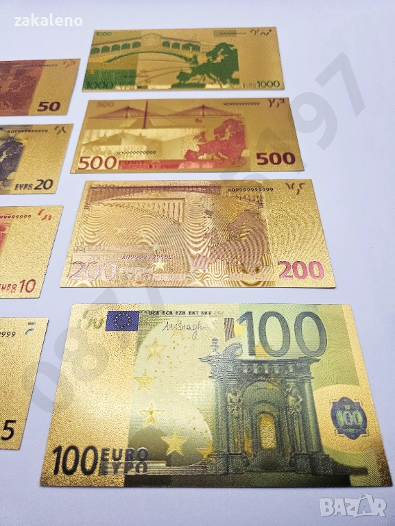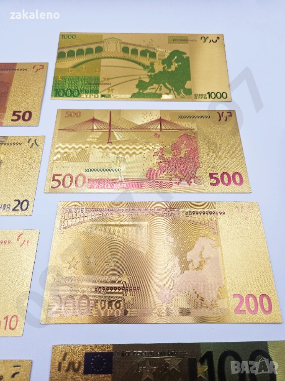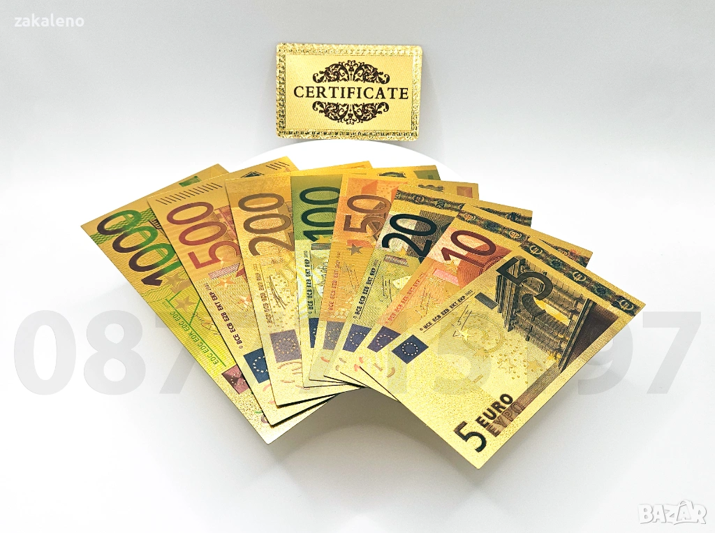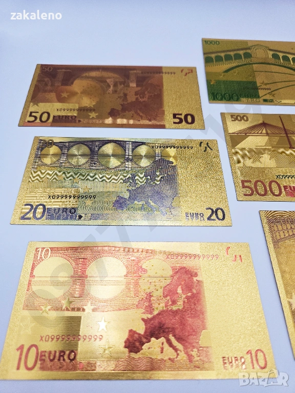 Лот 8бр златни банкноти/златна банкнота + сертификат - ЕВРО EURO → Обява 37570753