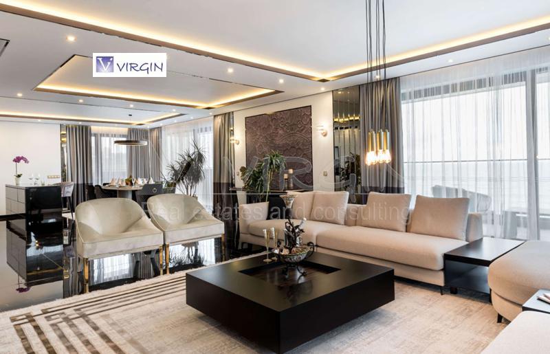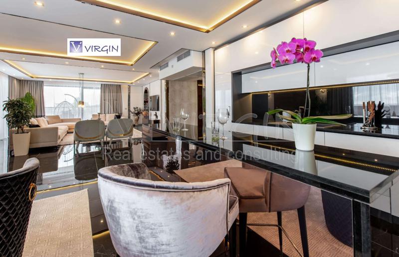The apartment consists of: entrance hall, living room with kitchenette, two bedrooms, two bathrooms with toilets, common terrace for the living room and one bedroom. The apartment is sold fully furnished and equipped, designed by a design studio with high-class materials and furniture.