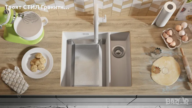 Гранитна Мивка за Вграждане под Плот Лондон 60 Duo 550 x 450 бяла → Обява 37574369