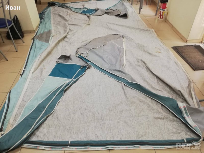 Забележки: Има поправка на едната страница. Направена е качествено и няма да създава проблеми при използването на форселта. Вижда се на снимките. Две бримки(дупчици) на тавана в единият ъгъл отпред до козирката. Залепени са с оригинална лепенка на Изабела, която на практика е вечна! Всичко останало е в отлично състояние. Циповете работят прекрасно, материята е здрава, прозорците са кристално чисти. Цената е съобразена със забележките !
