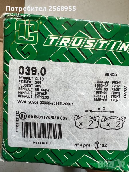 Trusting 039.0 Предни накладки PEUGEOT 205, 305, 309 RENAULT 9, 11, 18, 19, 20, 21, 30, Super 5, Cli