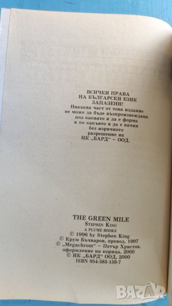 Книга Зеленият път, Стивън Кинг. → Обява 37584068