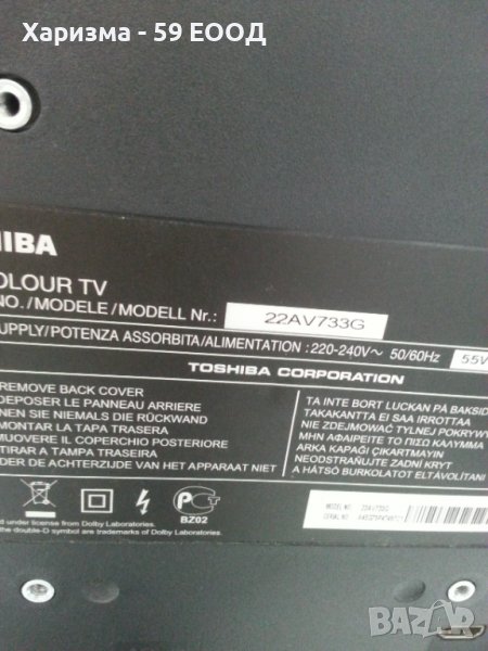 Телевизор Toshiba , модел 22AV7336 , внос от Германия, в много добро състояние и на изгодна цена. Телевизорът е проверен в сервиз и е с работещо дистанционно към него. Перфектен външен вид .