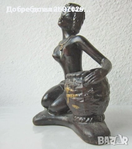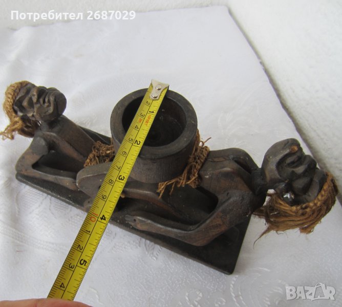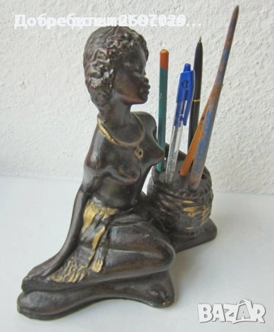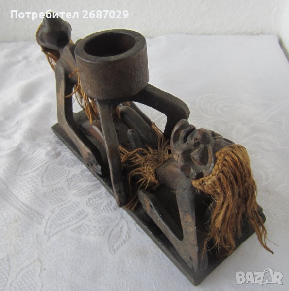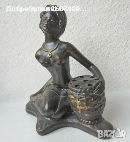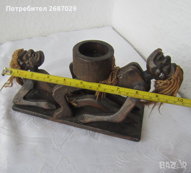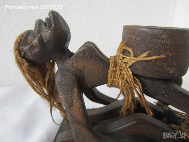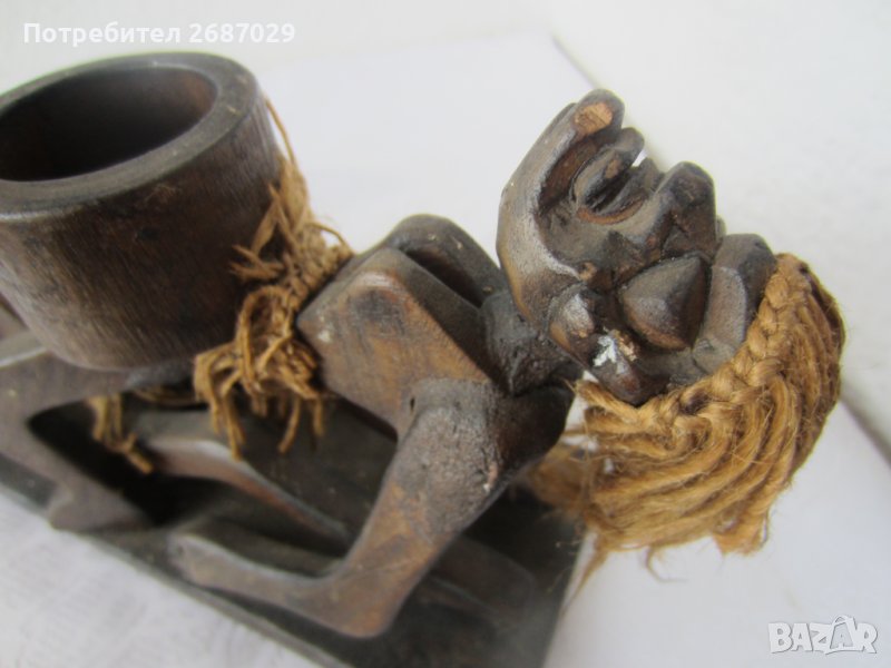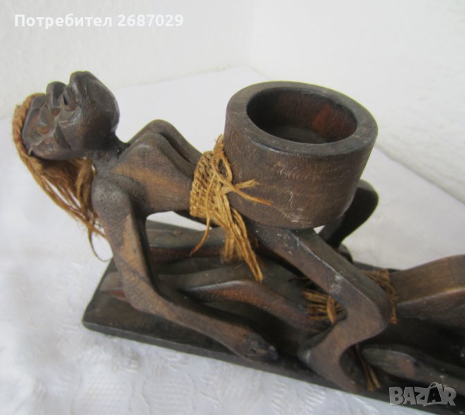 негри 25 см дълга композиция от дърво с дървен съд, жена керамика моливник, пепелник → Обява 37587922