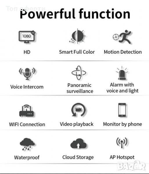Куполна камера тип крушка с ъгъл на видимост 360° и вграден микрофон. Може да се използва за скрито видеонаблюдение, наблюдение на персонала, контрол на клиентите в търговски обекти, контрол на качеството на обслужване. Камерата може да се завърти на 355 градуса хоризонтално и да се завърти на 90 градуса вертикално. Работи в дневен и нощен режим. Aвтоматично включване в нощен режим или ръчно чрез мобилното приложение: YCC365 PLUS , което е налично за iPhone и Android. Изключително лесен монтаж. Вграден микрофон с висока чувствителност и говорител за двупосочна аудио връзка.