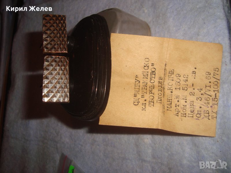 СТАРИ ПОЗЛАТЕНИ БУТОНЕЛИ - ТРАКИЙСКО ТВОРЧЕСТВО Пловдив РЕТРО КОПЧЕТА с КУТИЙКА и ДОКУМЕНТ 12449