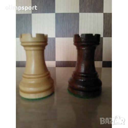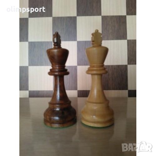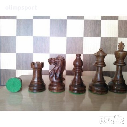 Дървени шахматни фигури Оригинални. Изработка - индийски палисандър. Дизайн Стаунтон 6, утежнени в основата, с текстилна подложка. Размери на царя - височина 95мм, диаметър на основата - 35мм.