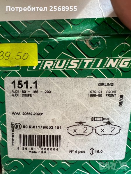 Trusting 151.1 Предни накладки AUDI 80 B3/B4 AUDI 90 B2/B3 AUDI 100 C2/C3 AUDI 200 C2/C3 1977-1996