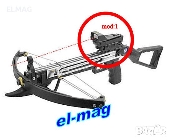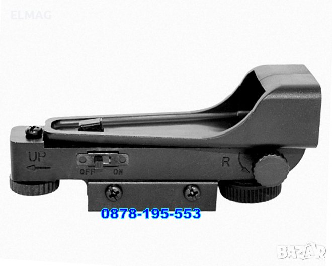 точка. Много удобен, не ограничава обзора с второто око, няма паралакс. Удобен за бърза стрелба до 150 м.При ползване на дистанционно за реверс на електрическият превключвател дава много дълъг живот на батерията.* Препоръчва се за малокалибрено и пневматично оръжие.
