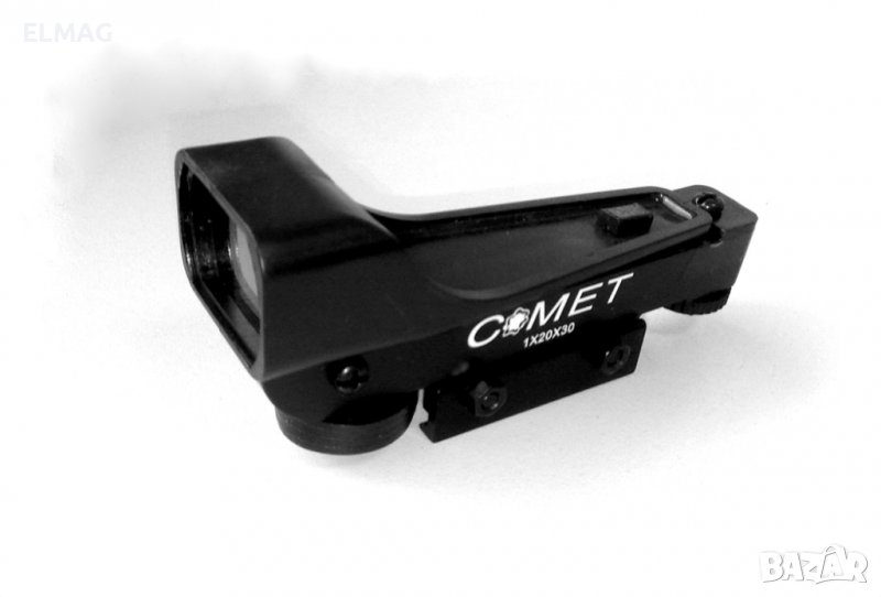 - Олекотен бързомер (холограмен тип) с червена точка - огледален. Леща тонирана в сиво. Постоянен интензитет и размер на червената
