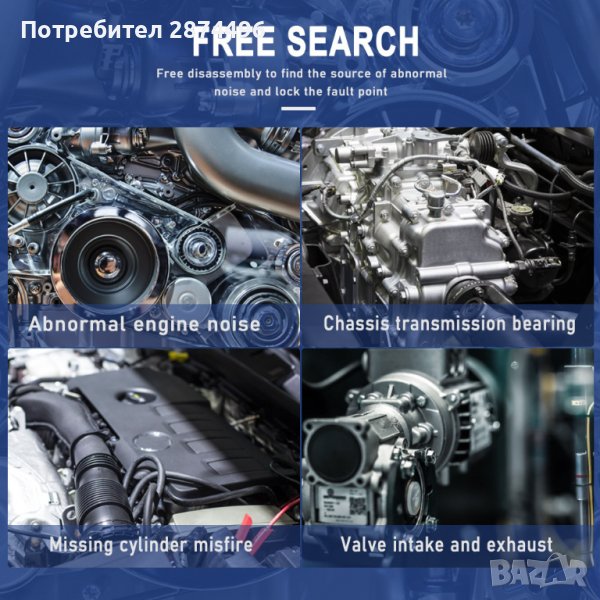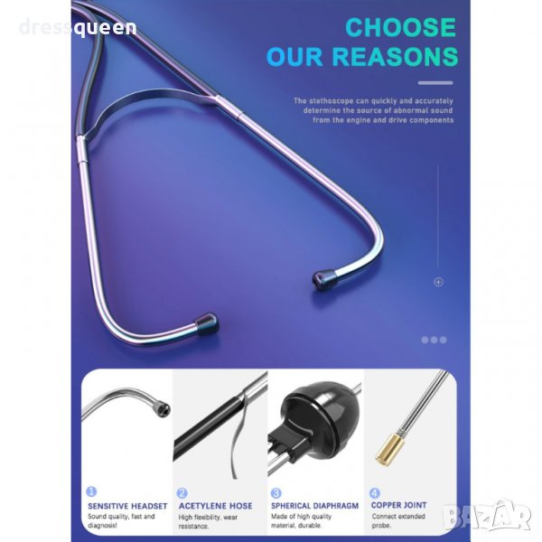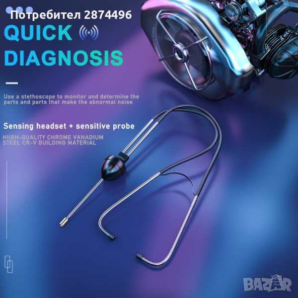 -С помощта на стетоскопа,можете бързо и точно да диагностицирате двигателя или др компоненти на автомобила си.