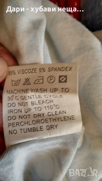 Без хартиен етикет.От меко, еластично трико - вискоза и еластан.Роклята не прозира и не се мачка лесно.