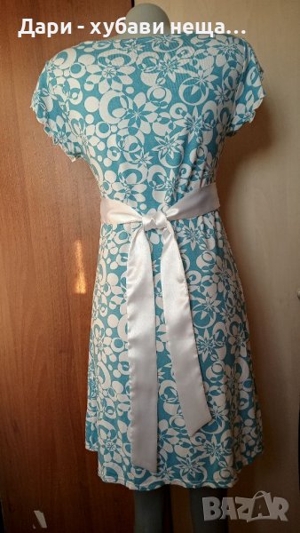 Свежа рокля в синьо и бяло, със сатенен колан 🍀♥️S,M♥️🍀арт 4418