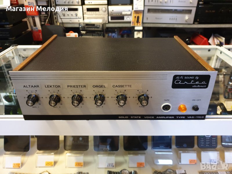 Гласов усилвател ARTEC VA5-115D Има 4 микрофонни входа и един линеен. В отлично техническо и ивзуално състояние.