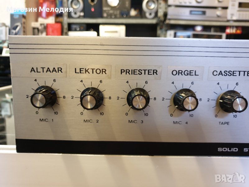 Гласов усилвател ARTEC VA5-115D Има 4 микрофонни входа и един линеен.