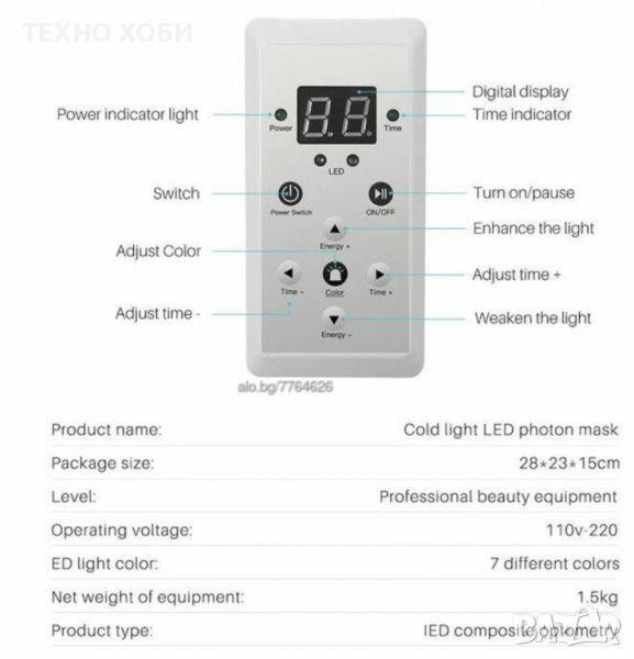 Led маската има 7 различни дължини на вълните в 7 различни цвята, като всеки цвят и дължина оказва различен ефект върху кожата.