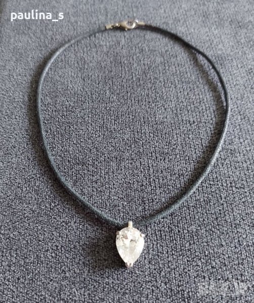2️⃣ . Колие тип чокър от бижутерска връв с голям циркон, без удължител, носено е, без дефекти - дължина 40см - цена 9,99лв