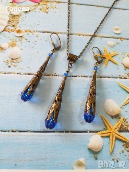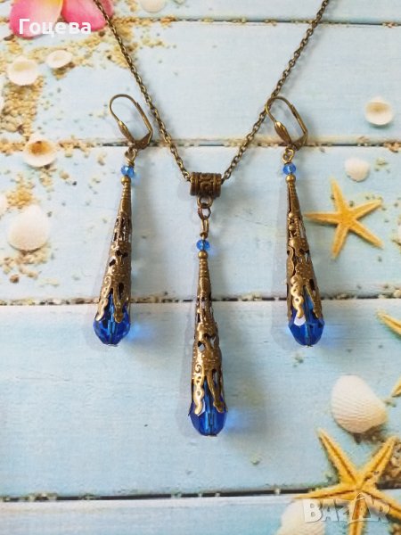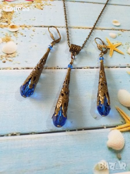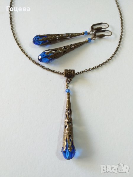 Дълги, елегантни и изящни обеци и колие в Кралско синьо с бронзов обков !