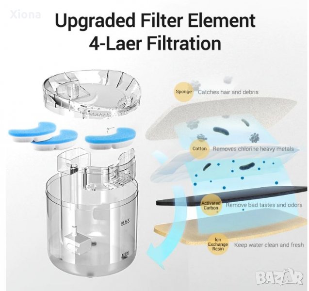 1. Микропорест филтърен материал с висока плътност, който филтрира космите и примесите във водата, за да намали топките косми в тялото и да не се повреди помпата на фонтана.