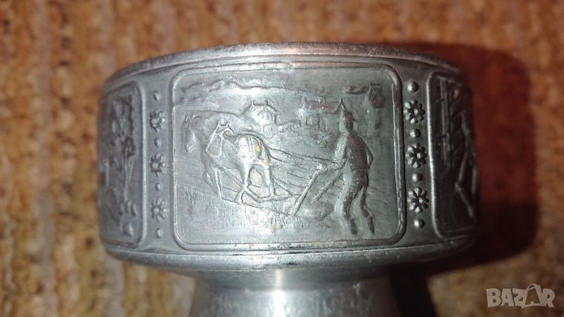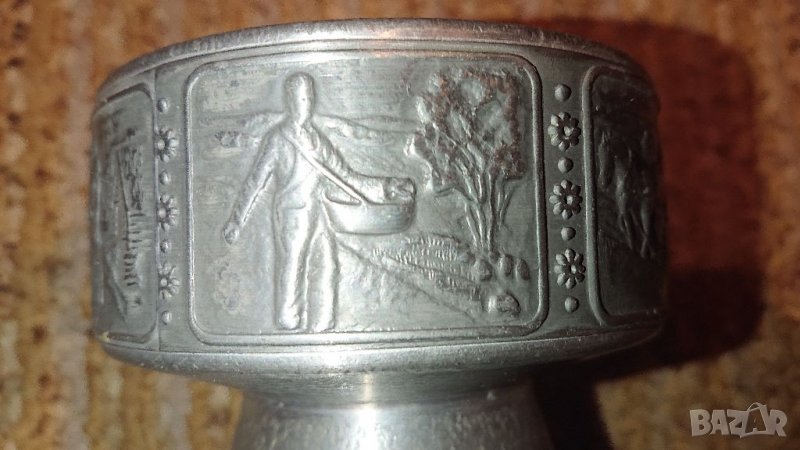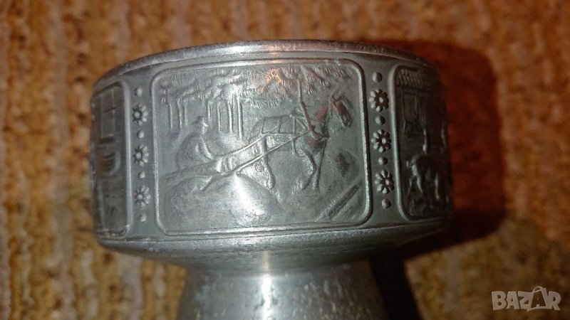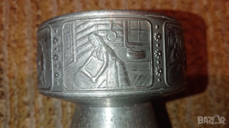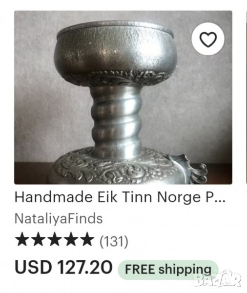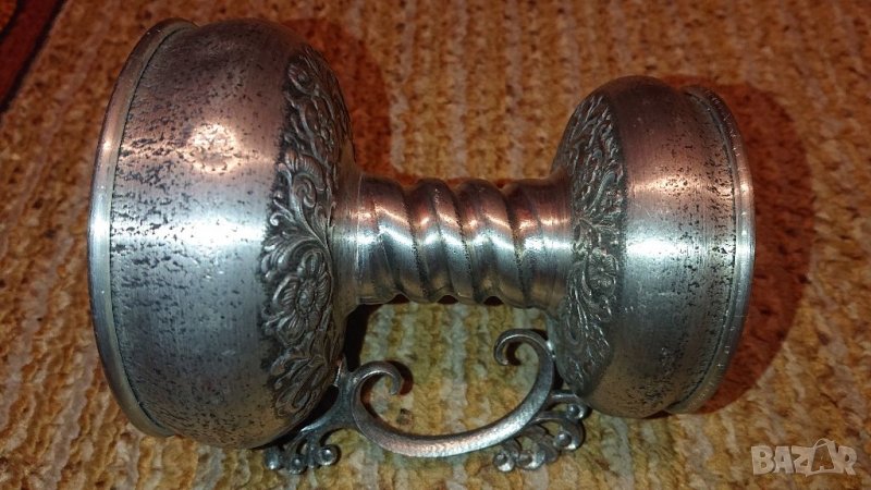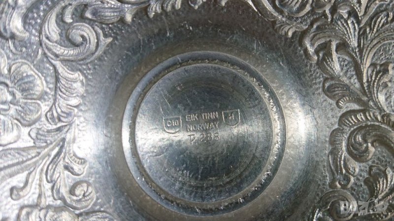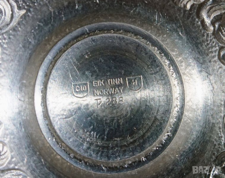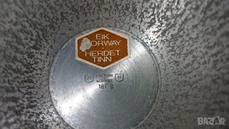 Двата еднакви - ръчно изработени калаени свещници Eik Tinn Norge - купа на пиедестал от Astri Holthe, 1970 г., норвежко метално изкуство, Eik Tinn Норвегия. Астри Холте (1917-1998) е норвежка дизайнерка от средата на века, специализирана в метал. През 1949 г. тя и нейният съпруг Герхард основават това, което ще се превърне в много успешна фабрика близо до норвежкия град Арендал в долината Барбу.