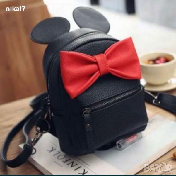 дамска раница кожена мики маус с червена сладурска панделка ново чанта