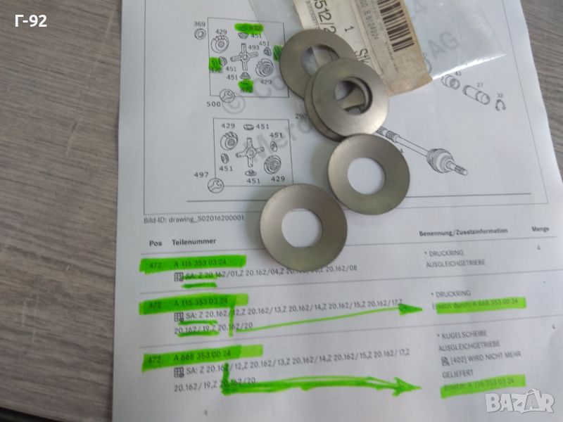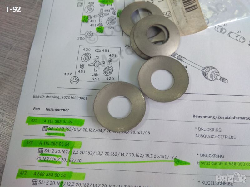A1153530324=A6683530024**NEU**MERCEDES-BENZ** ШАЙБА ЗА РЕГУЛИРАНЕ НА ДИФЕРЕНЦИАЛ **