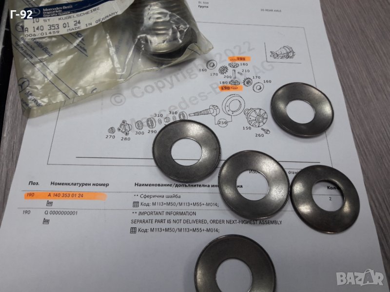 A1403530124**NEU **MERCEDES-BENZ** ШАЙБА ЗА РЕГУЛИРАНЕ НА ДИФЕРЕНЦИАЛ **