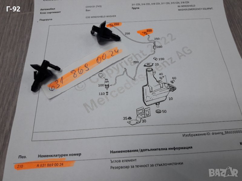 A6318690024**NEU**MERCEDES-BENZ**ПРЕХОДНИК ЗА СИСТЕМАТА НА ЧИСТАЧКИТЕ **