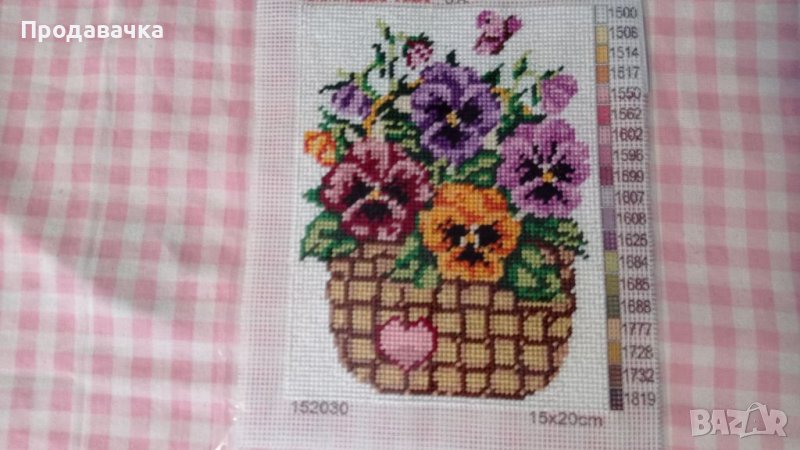 Продавам гоблен теменужка, размери: 15/20см. Бод: 4/4 без рамка.
