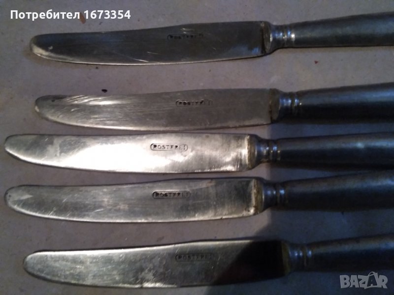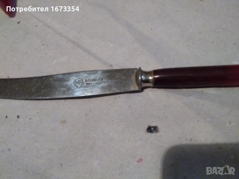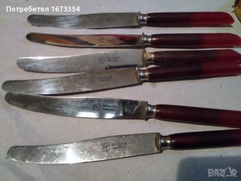 2)Пет броя ножове малки с размер дължина 20 см-, 11см дължина на острието с алуминиеви дръжки Един брой голям нож с размер дължина 25 см, 13 см дължина на острието с алуминиева дръжка марка Solingen Rostfrei Цена 45,00лв
