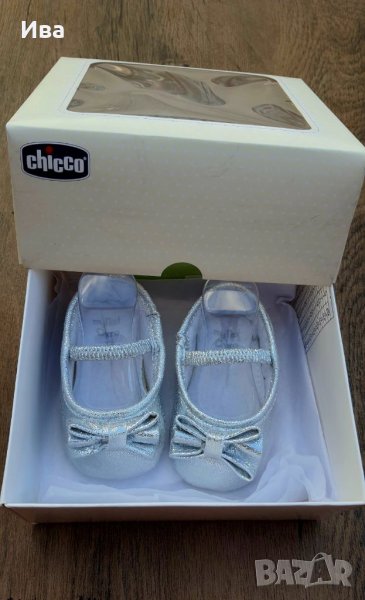 Нови с кутия. Сребристи с панделка бебешки обувчици Chicco