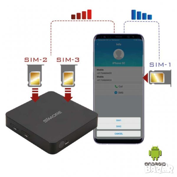 Поставете сим карти в DualSIM@home, изтеглете приложението SIMhome от Google Play Store и само няколко прости настройки ви делят от това да имате 3 или дори 4 телефонни номера в едно устройство! Навсякъде с вас, където има GSM покритие!