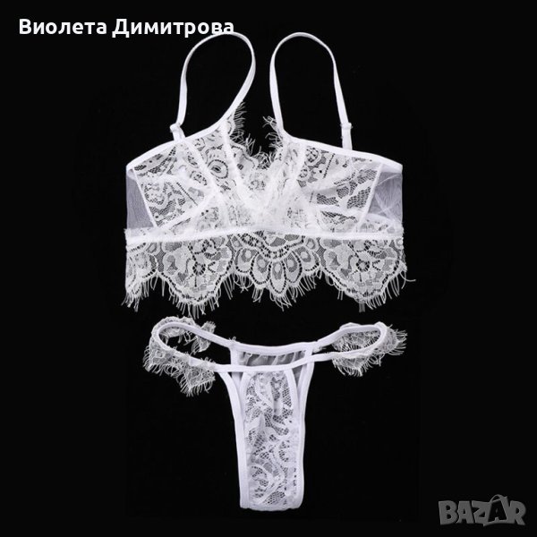Еротичен секси комплект, който бързо и лесно може да превърне всяка жена в чувствена изкусителка. Изработен от гениално съчетание на прозрачен тюл и флорална дантела, допълнена с V-образен изрязък в областта на деколтето, закачливо завършени с бели сатенени панделки. Еластично ластичните презрамки на това бяло бельо са красиво украсени с дантела, подчертаващи стилно вашите рамене.