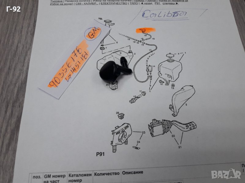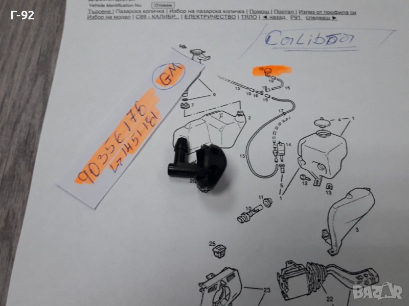 90356178**NEU**GM**CALIBRA**ДЮЗА ЗА СИСТЕМАТА НА ЧИСТАЧКИТЕ**