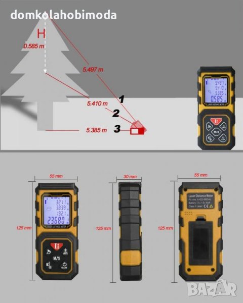 Лазерна ролетка,0.3–40метра,Площ и Обем,11,7х6х3см