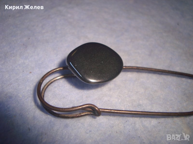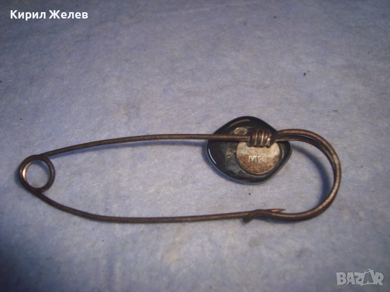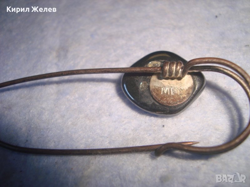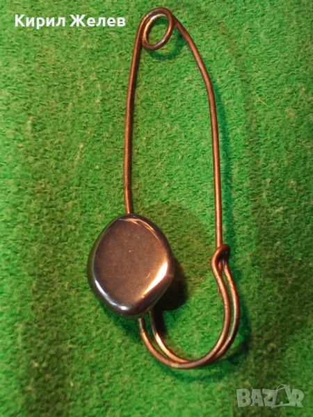 СТАРА ПОСРЕБРЕНА РЕТРО АРТ ДЕКО ФИБУЛА ИГЛА с ПОЛИРАН ХЕМАТИТ 8768