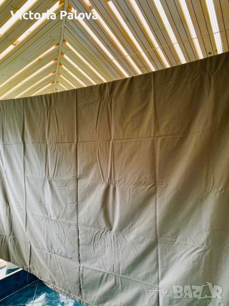 Неупотребяван,голям 230 см на 220см,красив цвят,гладък блестящ памук,издържа на високи градуси при пране,тик-так копчета.