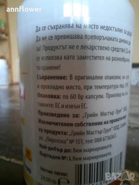 Начин на употреба: 1 капсула дневно с 200 мл. вода 30 минути преди хранене.