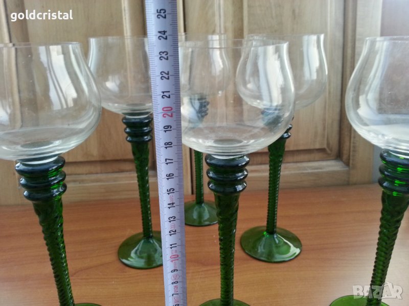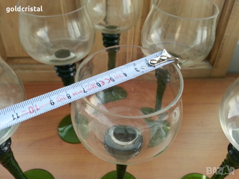 Стари стъклени чаши ръчна изработка цветно зелено стъкло кристално стъкло 6бр-360лв без забележки сервиз комплект сет лот ретро арт декор винтидж колекция стари антикварни предмети обзавеждане за домашно и семейството подходящи за подарък за ценители и колекционери